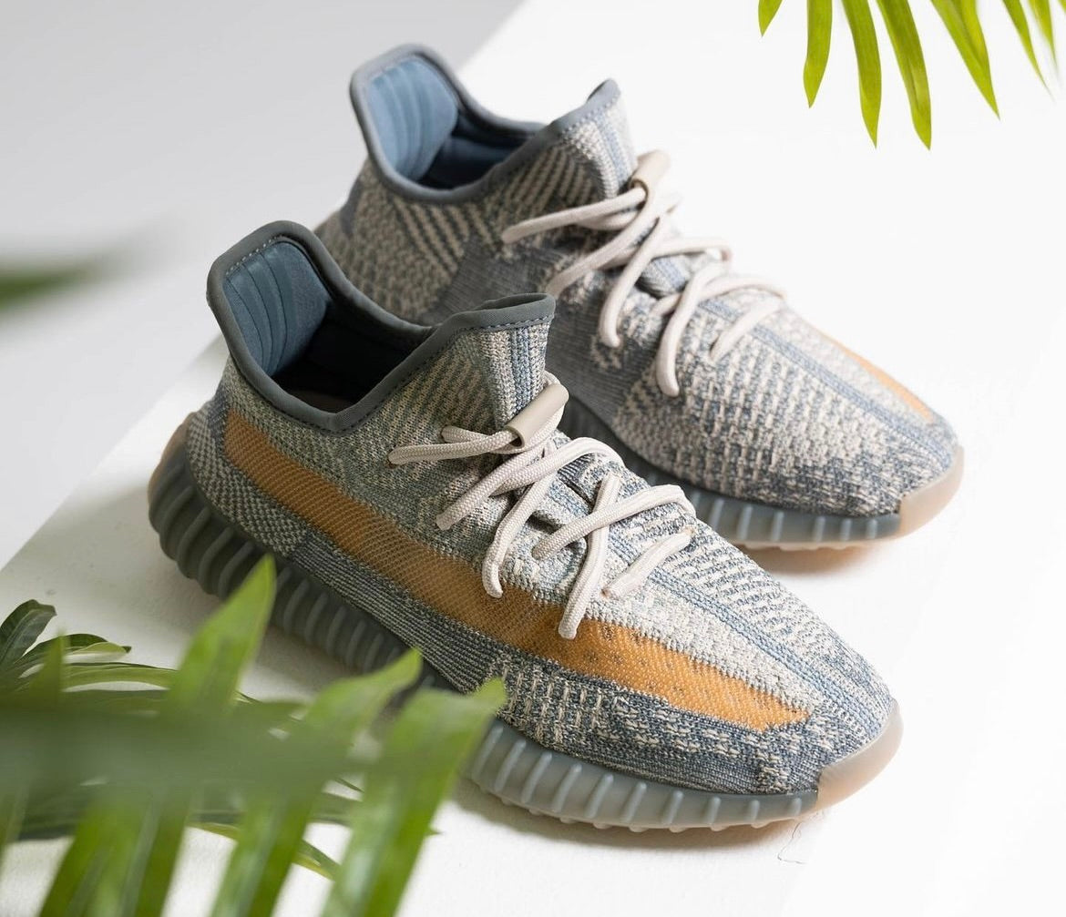 The Yeezy 350 ‘Israfil’ features a patchwork-like composition on the upper, constructed from a two-tone blend of tan and grey yarns. The neutral hues are enlivened by a streak of yellow on the signature post-dyed side stripe. Cushioning comes courtesy of the pairs full-length boost midsole also encased in the semi-translucent rubber sidewall.