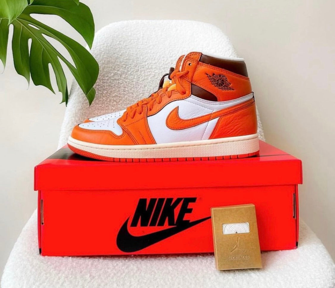 The AJ1 High ‘Starfish’ brings back the hue of the ‘Shattered Backboard’ release from 2015. The upper features a white base, contrasting orange overlays, and a brown collar. A Nike Air tag embellishes a padded tongue in a vintage off-white finish. The aged aesthetic is repeated on the midsole, fitted with an encapsulated Air-sole.