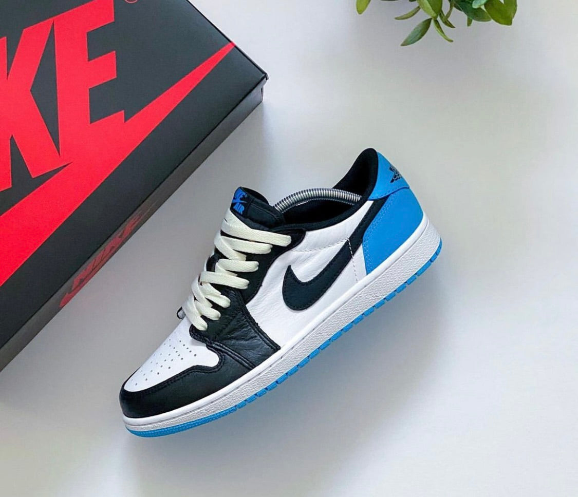 Paying homage to MJ's alma mater, this AJ1 Low features the simple and clean UNC colourway. A leather upper features a white base with black overlays on the forefoot and lace area, but a vivid dark blue on the back heel area. A black swoosh frames the profile, while a black wings logo can be found on the back heel piece.