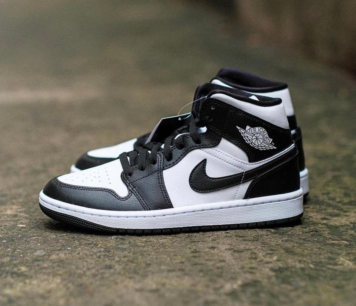 No stranger to black and white builds, this specific AJ1 Mid stays true to Panda blocking, with white uppers and nylon tongues engulfed by a sea of bold black overlays. Liners, laces, and tongue branding follows suit, with white wings motifs and two-tone sole units sitting underfoot to complete the design.