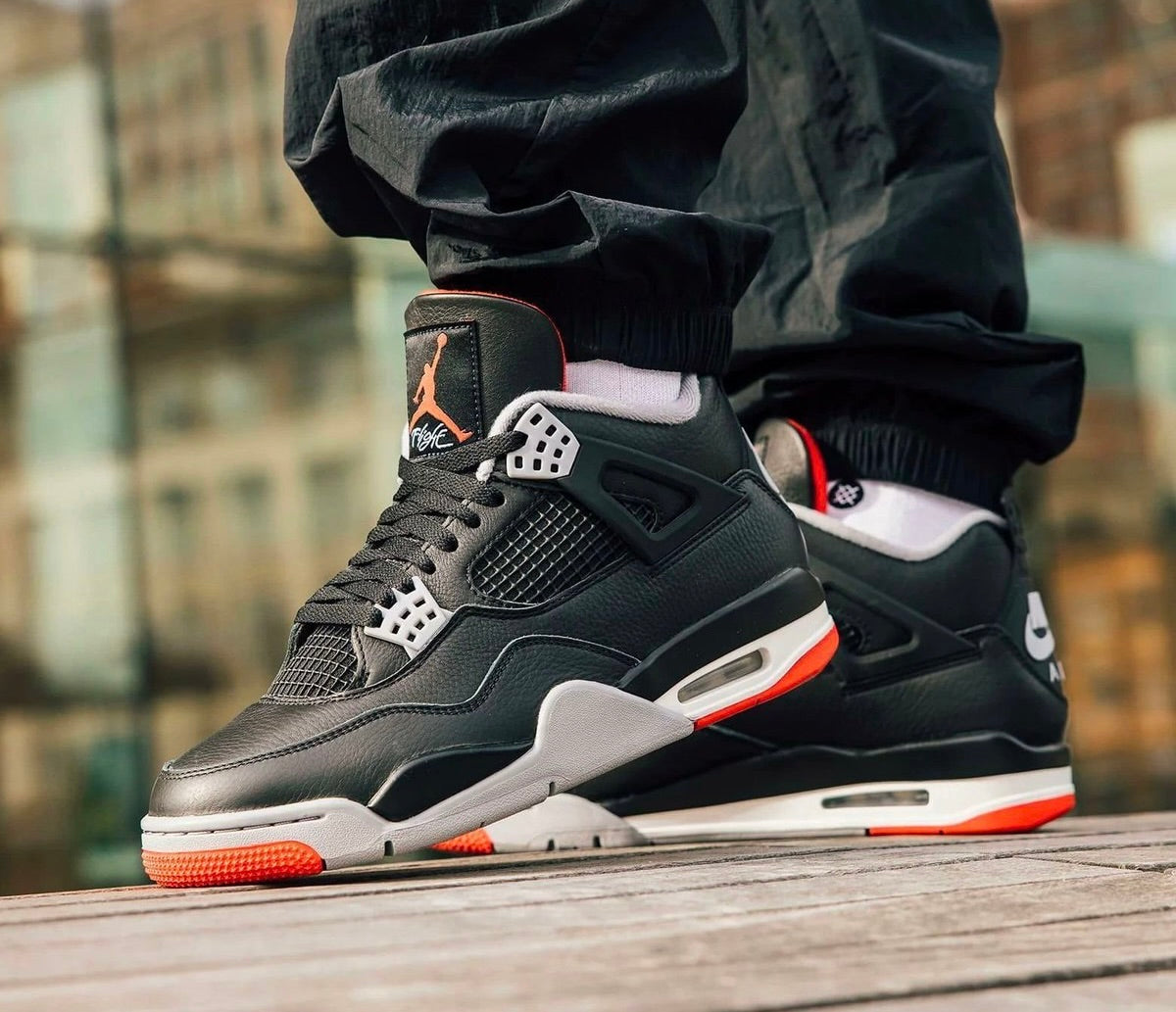 The AJ4 ‘Bred Reimagined’ makes over the classic silhouette with a black leather upper, replacing the nubuck of the OG release. Details include quarter panel netting, grey molded eyelets, and branding on the heel. The pair is mounted on a lightweight polyurethane midsole, fitted with encapsulated air-sole cushioning in the foot.