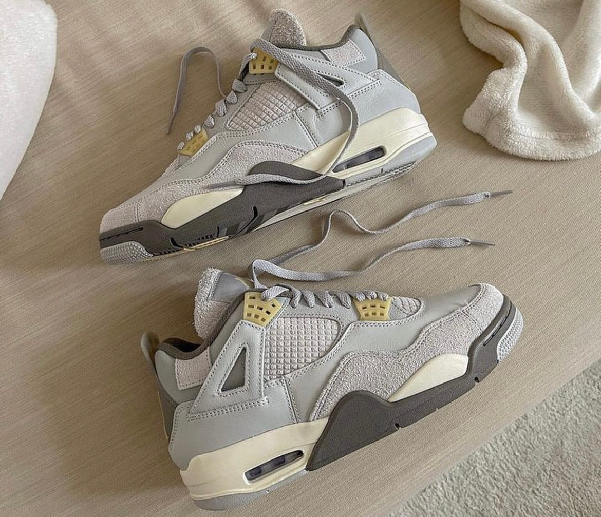 Tinker Hatfield’s '89 model is modernised with the AJ4 'Photon Craft'. Grey leather forms the base of the upper, with colour-matched suede on the forefoot overlay and collar. The signature netting that originally appeared on the quarter panel has been replaced with grids of suede, accented by support wings constructed from leather.