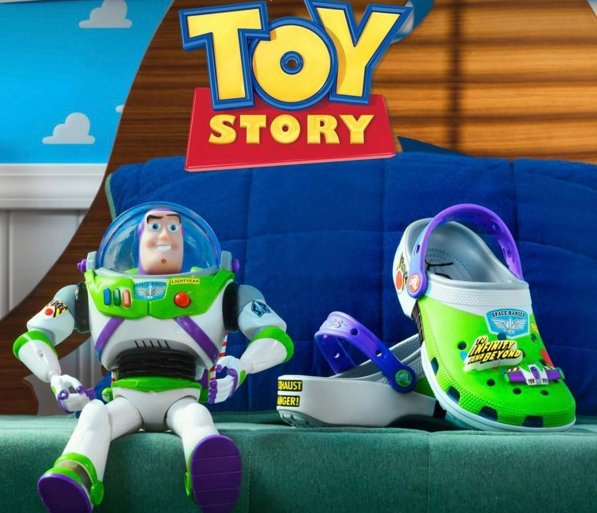 Following the effective formula of adding each character’s unique colours, patterns, and personality traits on the Classic Clog, the two protagonists emerge on the globally popular rubber shoe. The Classic Croc 'Buzz Lightyear' suits up in a Space Ranger suit, with matching light grey, green, and bright purple surrounding by a variety of decals.
