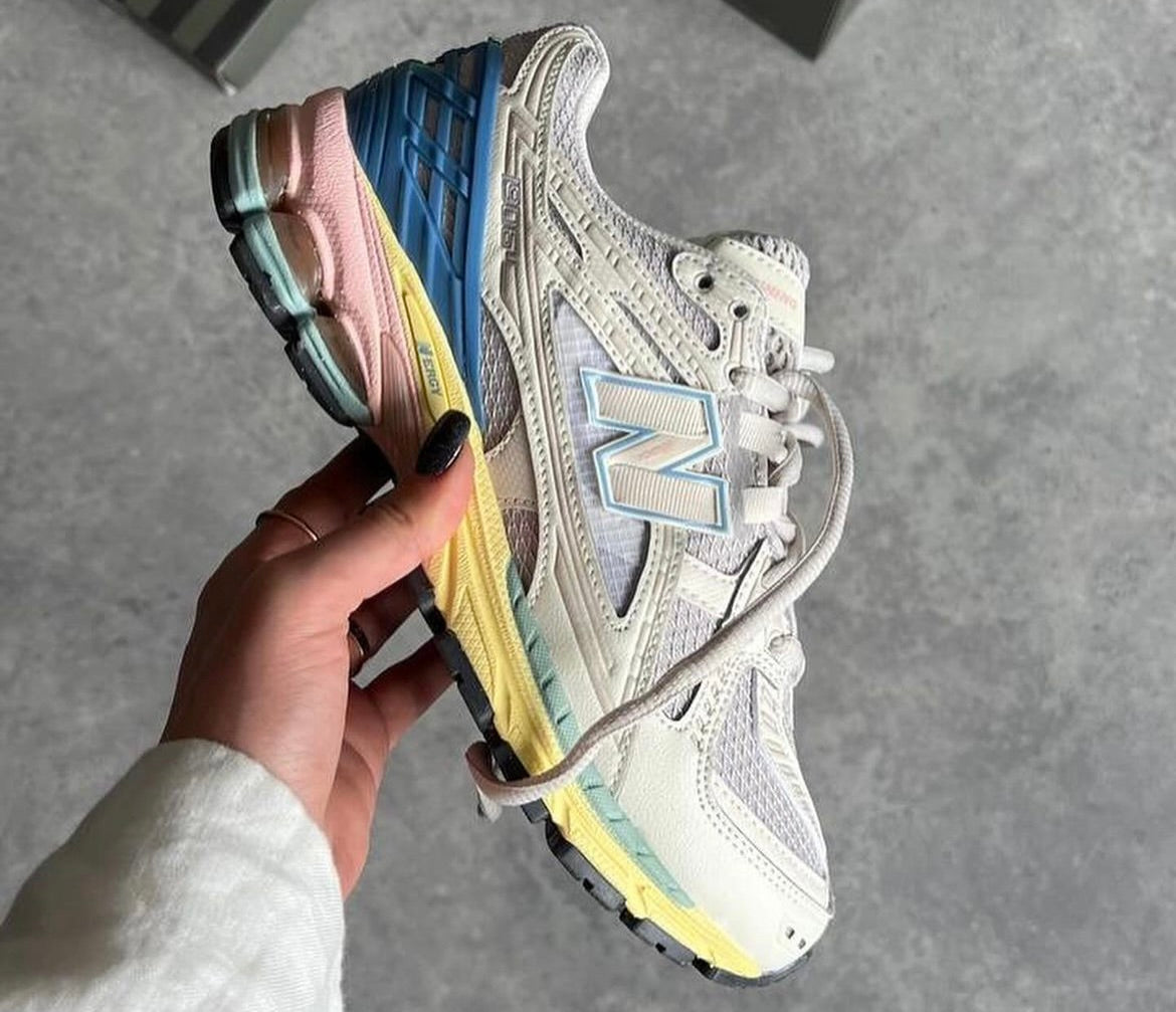 The NB1906U 'Angora Blue Pink’ utilises a breathable off-white mesh upper with tonal synthetic leather overlays. The NB N-lock lacing system is integrated into the ‘N’ logo, outlined in a blue trim that matches the heel TPU counter. It sits atop a pink and yellow ABZORB midsole, which features N-ergy cushioning and ABZORB SBS heel pods.