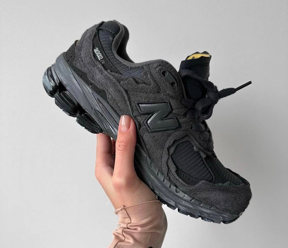 The NB2002r Protection Pack 'Phantom' is composed of three neutral colourways, showcasing a monochrome dark grey finish throughout the upper and a breathable mesh base with raw-edged suede overlays that enhance the deconstructed look. A tonal ‘N’ logo on the quarter panel is joined by a discreet 2002r callout on the lateral side.