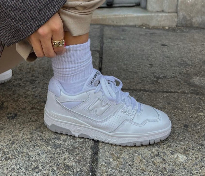 The NB550 'White Grey' upper is crafted from smooth leather with a perforated panel for extra texture. NB’s signature logo sits on the sidewalls and 550 is stitched onto the toe. Underfoot, just the right amount of cushioning ensures support and comfort, while the textured tread offers grip on practically any terrain.
