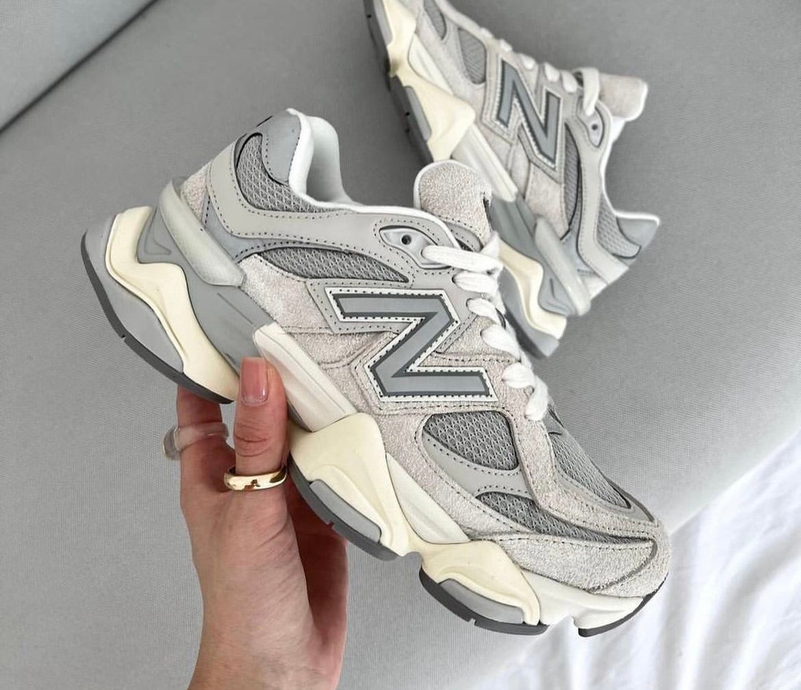 The NB9060 'Lunar New Year' is inspired by the Year 2000, and features a combination of grey mesh with suede overlays. It leads into wavy patterns atop the silhouettes midsole, emphasised by New Balance's well-known cushioning platforms of ABZORB and SBS. Further details include a chunky rubber sole, round toe, and white front lace-up fastening.