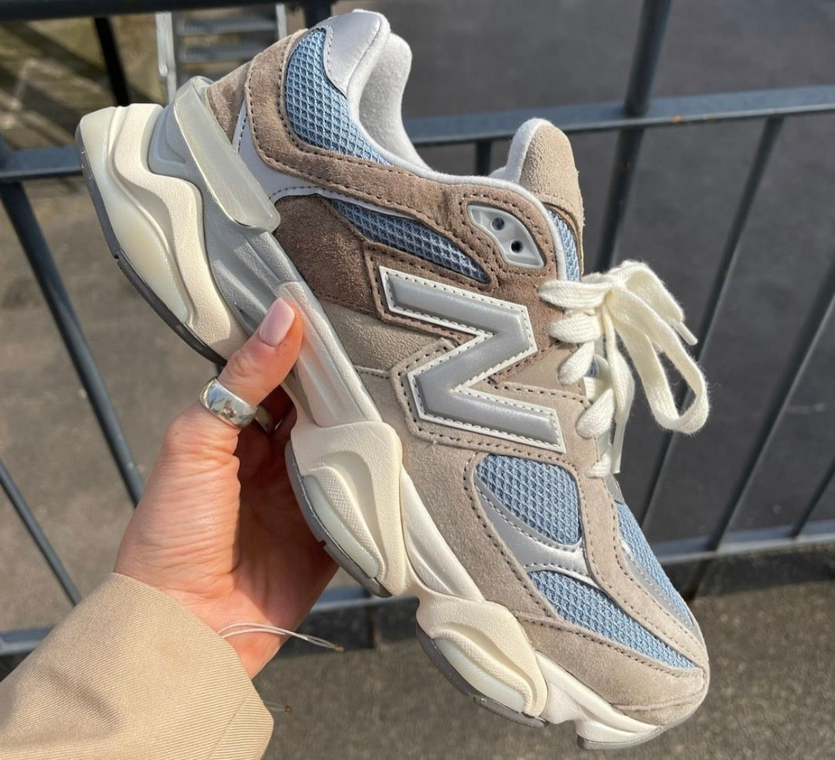 The NB9060 ‘Mushroom’ features a mesh base with suede overlays stretching from front to the back. The base takes on dove grey and light pink colours, with the latter appearing on the lateral. Varying shades of mushroom-like tone engage the overlays along and across the upper, while the N symbol and the heel accents are a grey hue.