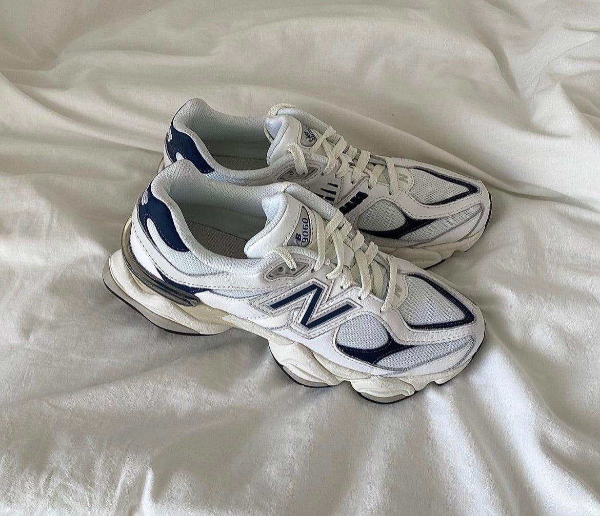 The NB9060 'White Navy' is a sleek and stylish sneaker that combines modern design with classic elements. The upper is made of premium leather and mesh, providing durability and breathability for comfort. The white colourway, with contrasting blue hues gives it a clean and minimalist look, making it a versatile fit.