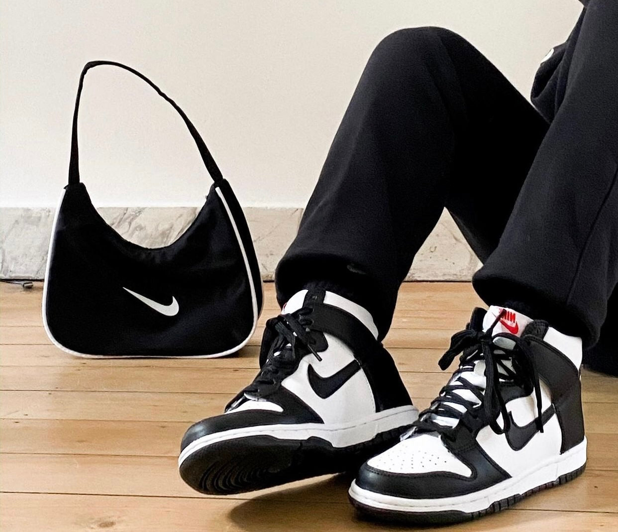 The Dunk High ‘Black White’ outfits the vintage ‘80s silhouette in an essential colour scheme. The upper pairs a white base with black on the eyestay, swoosh, and overlays around the toe and heel. A pop of red hits the Nike logo on the tongue tag. A durable rubber cupsole maintains the elemental black and white palette.