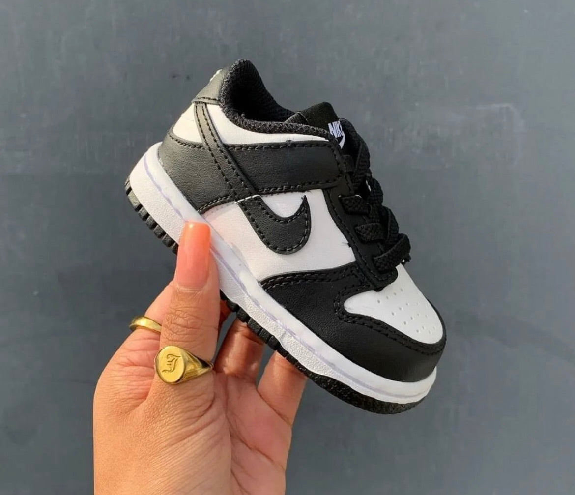 The Dunk Low TD ‘Black White’ offers a scaled-down version for little feet, rendered in a two-tone colour scheme that spans both the upper and tooling. Design details are highlighted by a woven tag atop a padded nylon tongue. The rubber outsole, featuring a traction pattern the Dunk shares with the AJ1, offers superior grip.