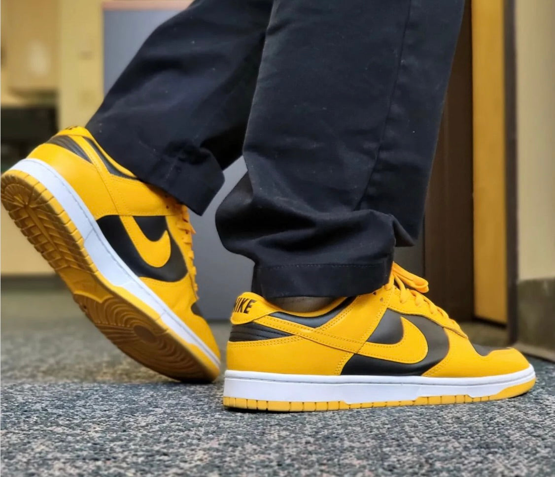 Taken from the original Iowa colourway from the '85 series is the Dunk Low 'Goldenrod'. Featuring a simple two-tone colour scheme throughout the upper, with a solid black base and contrasting yellow overlays. Branding elements include a woven tag on the black nylon tongue and a wordmark embroidered on the heel tab.