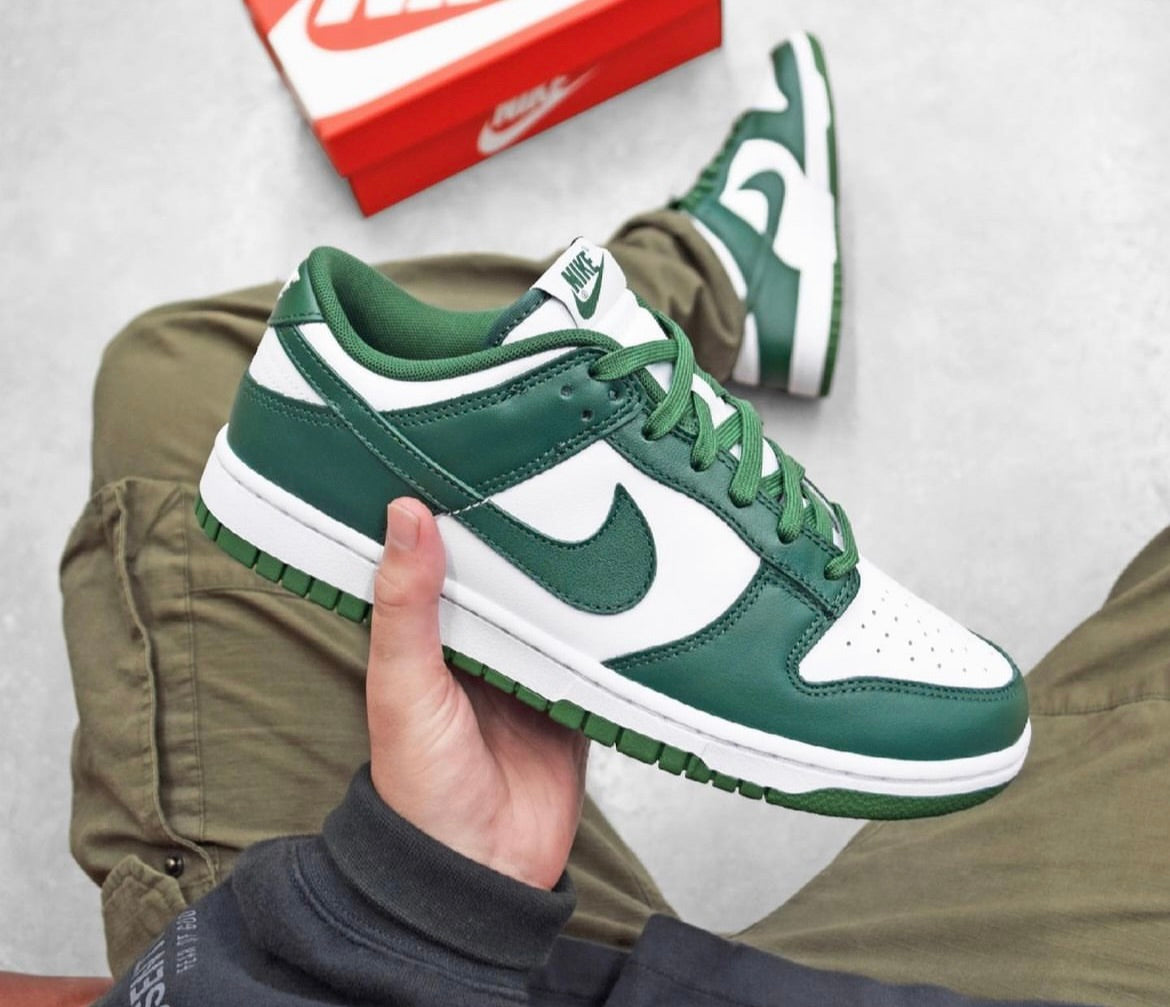 The Dunk Low ‘Michigan State’ pays tribute to the spartans with an upper in white and green. It offers a comfortable fit by pairing a textile lined padded collar with a nylon tongue. Nike branding makes its way to the tongue, sockliner and heel. Resting on a rubber cupsole, they feature a traction pattern, designed for pivoting on hardwood.