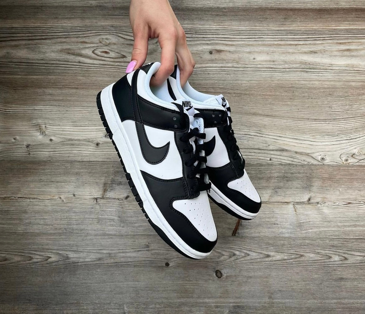 The Dunk Low Next Nature 'Black White' incorporates at least 20% recycled content. The synthetic leather upper complements the clean white base with contrasting black overlays. It features a Nike tongue tag and Nike wordmark on the heel tab. A pop of neon green finish appears on the sockliner and is accented in Nike's pinwheel logo.