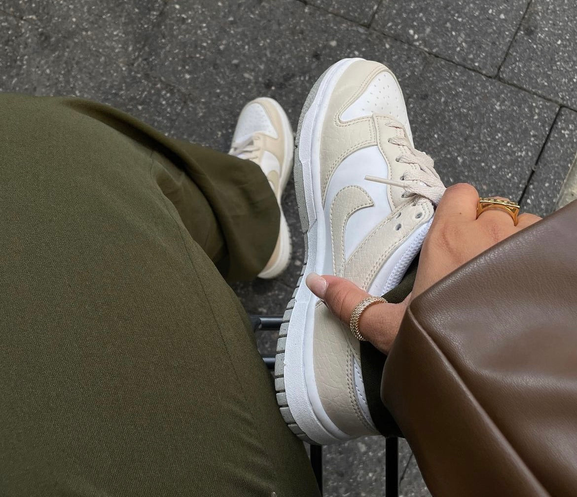 The Dunk Low Next Nature ‘Orewood Brown’ pairs neutral tones with a sustainable build. Made with at least 20% recycled content, the synthetic leather upper features a white base with beige overlays and a colour-matched swoosh. Branding appears on the tongue and heel tab, while a volt-coloured sockliner displays Nike’s pinwheel logo.