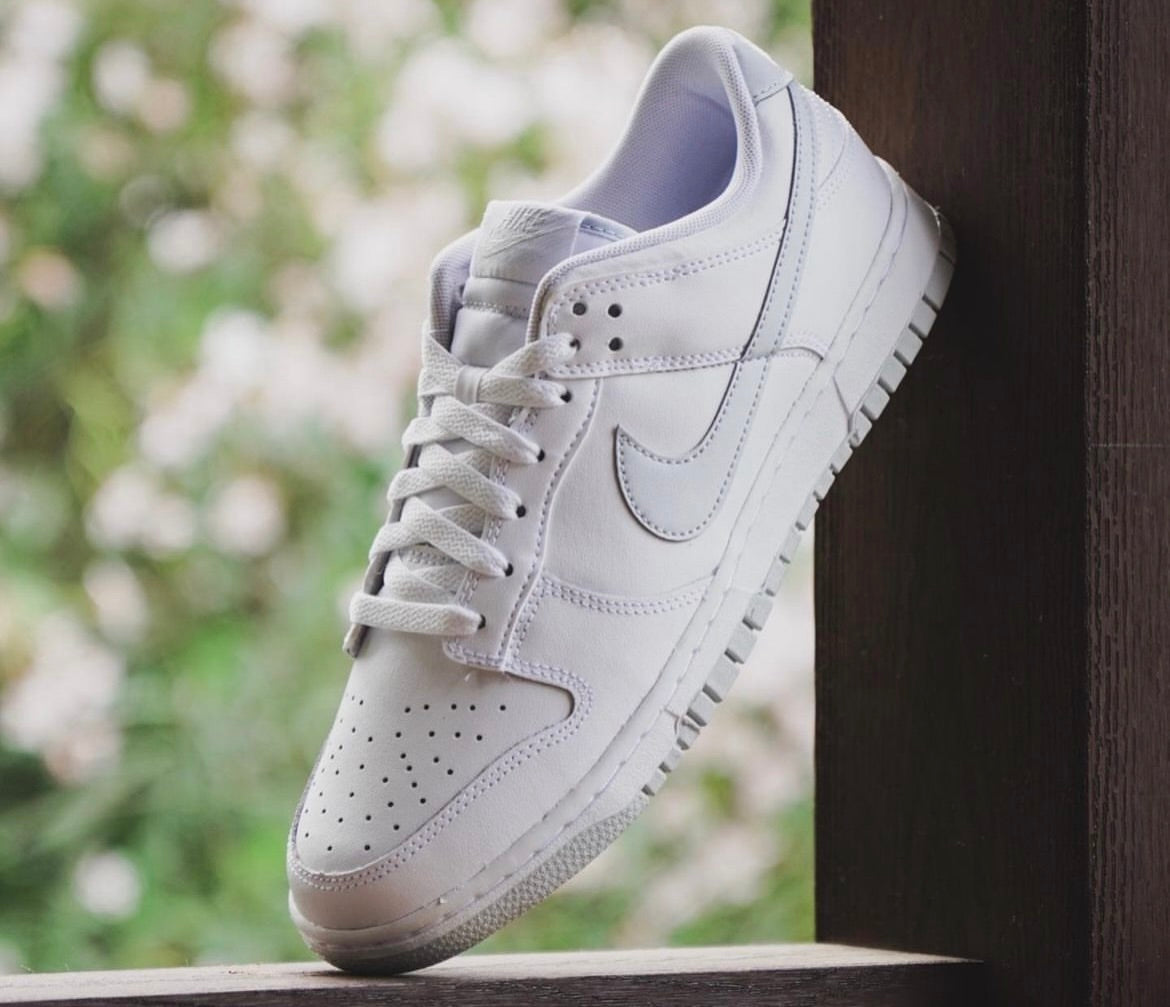 The Dunk Low 'Pure Platinum’ gives the iconic silhouette a blank-slate makeover. It carries a white upper, accented with a grey swoosh. Details include a perforated toe box and a low-cut collar. Branding appears on the tongue tag, sockliner and heel tab. Its mounted on a traditional cupsole, featuring stitched sidewall construction.