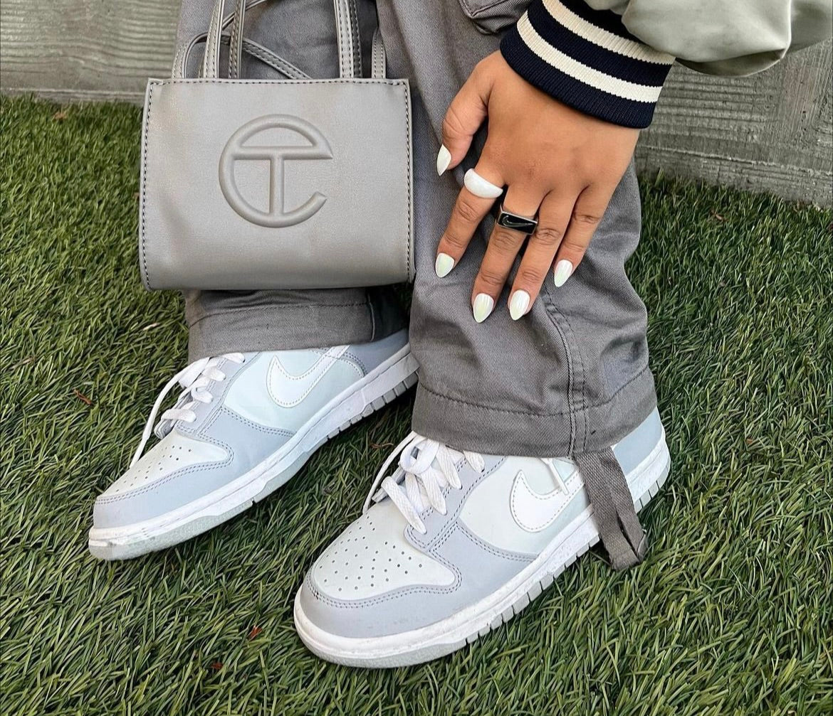 The Dunk Low 'Pure Platinum' is crafted from smooth leather, with tumbled leather panels on the side. The swoosh sits on the sidewalls in a crisp white, while the rest comes in a clean grey that goes with everything in your wardrobe. More branding is stitched onto the heel, while lightweight cushioning offers comfort and support.
