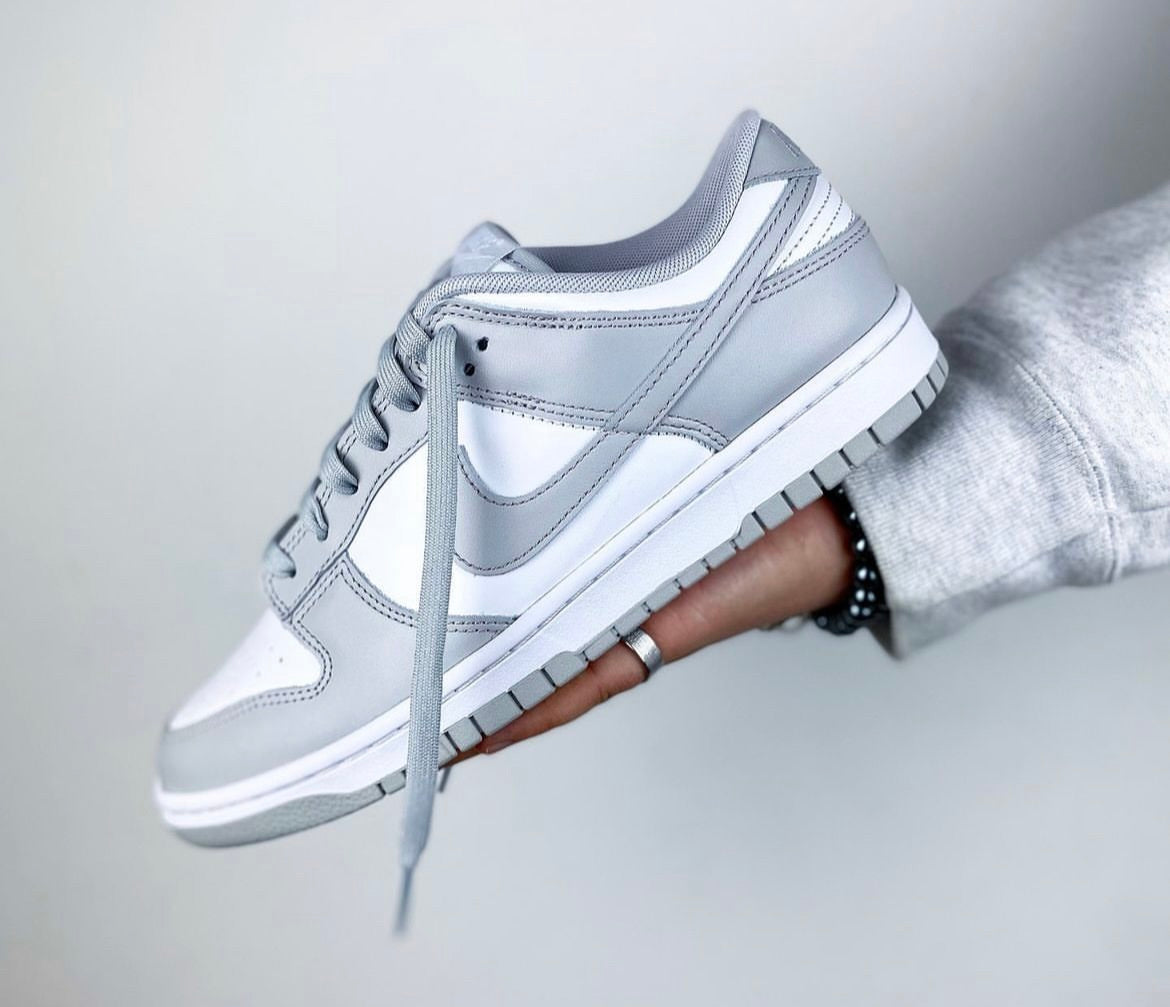 Delivering a two-tone colourway is the Dunk Low 'Grey Fog'. The upper features a white base with contrasting overlays in light grey, with the swoosh, laces, and tongue tag in the same tone. Additional branding is on the heel tab and padded sockliner. On the bottom is a rubber cupsole that pairs white sidewalls with a grey rubber outsole.