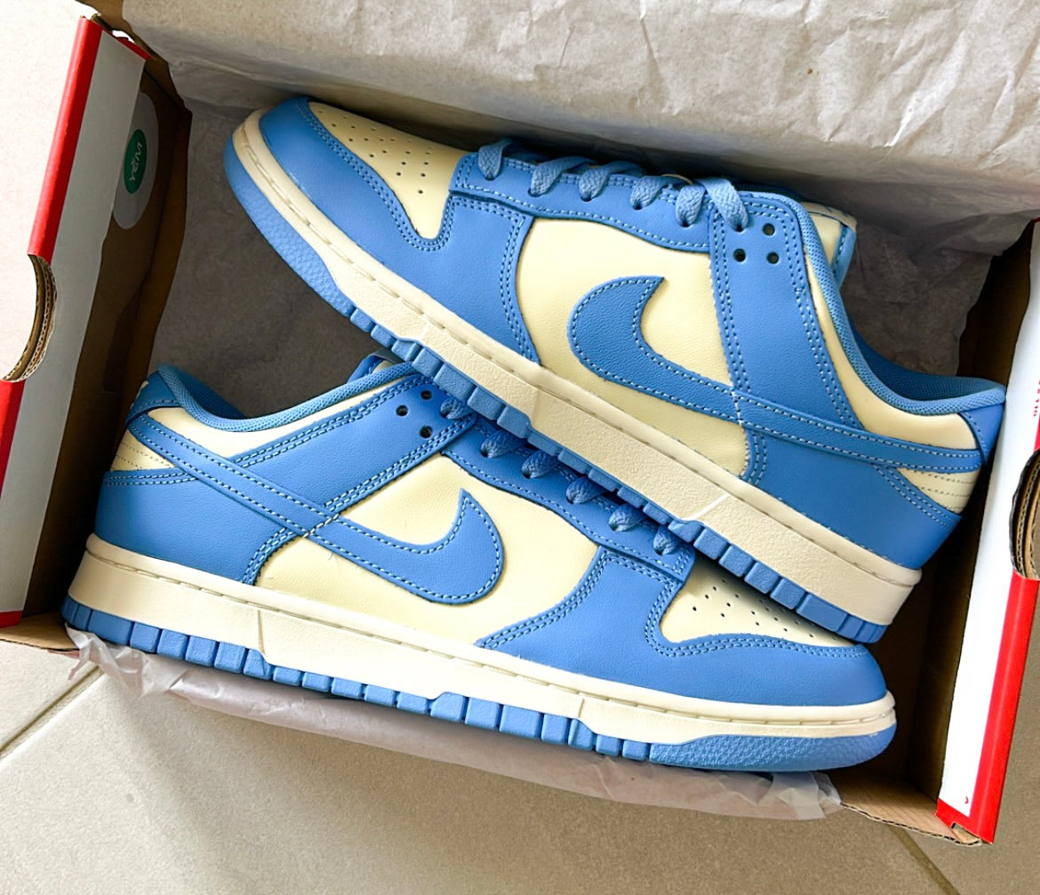 The Dunk Low 'University Blue Coconut Milk' features an off-white base with powder blue overlays and a colour-matched swoosh. The heritage details include a breathable nylon tongue and perforated detailing on the toe box. Anchoring the sneaker is a durable cupsole, highlighted by white sidewalls and a high-traction uni blue rubber outsole.