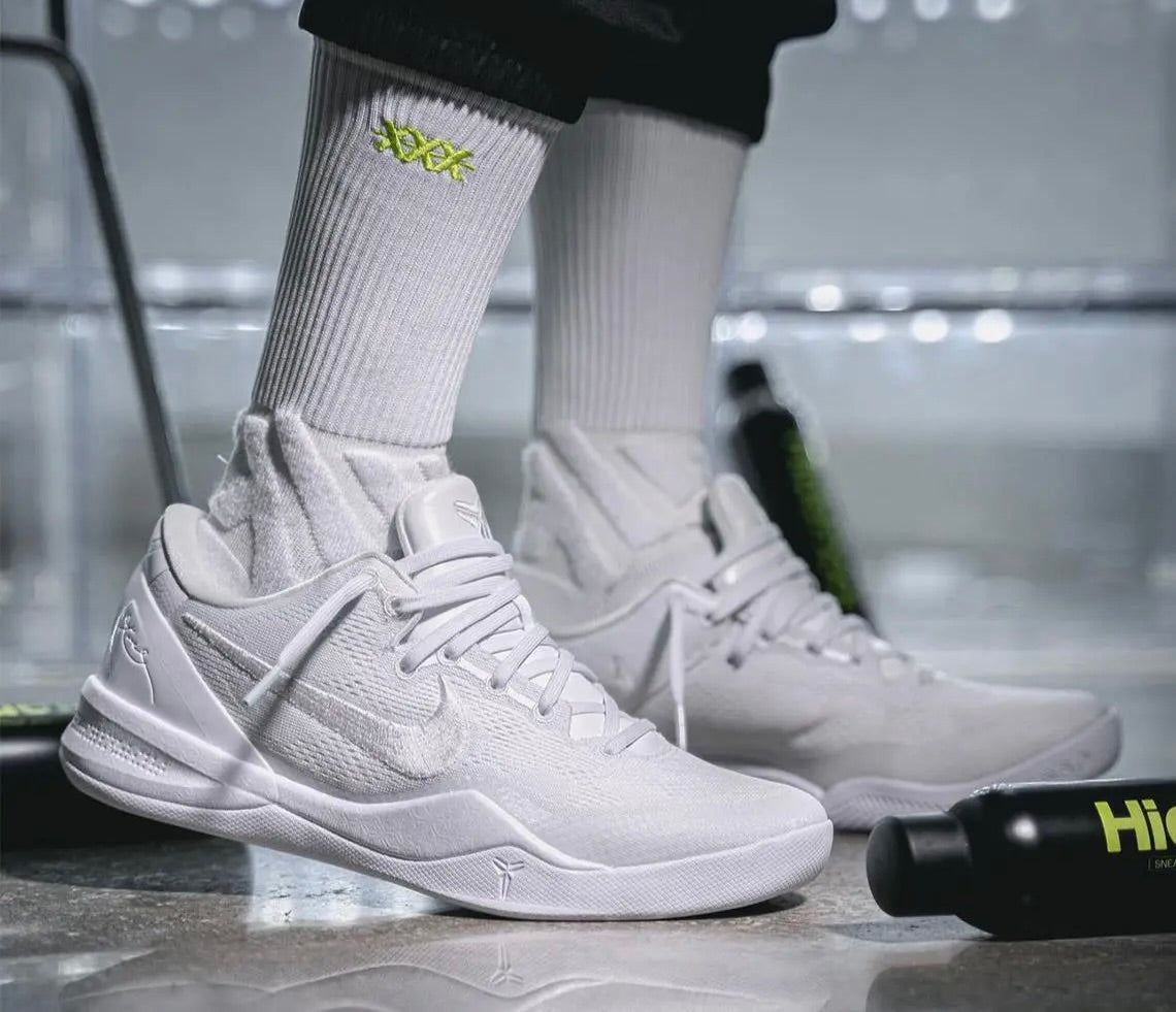 The Kobe 8 'Halo' brings back a new version of Kobe's 8th signature shoe in a blank-slate finish. The low-top features a white upper with tonal swoosh branding. Kobe’s signature is etched on the external heel counter, while his logo decorates the tongue. Performance benefits include a drop-in react midsole and carbon fiber shank.