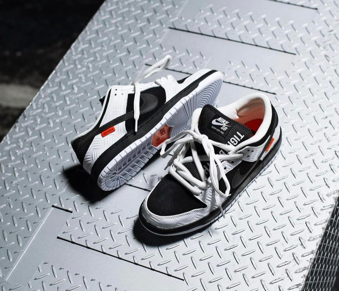 The SB Dunk x TIGHTBOOTH presents the Japanese brand’s take on the SB. It carries a black upper with white leather overlays at the forefoot and heel. On the lateral, an orange TIGHTBOOTH tag is appended to the reflective black swoosh. Logos adorn the tongue, while insoles display mismatched TIGHTBOOTH and SB branding.