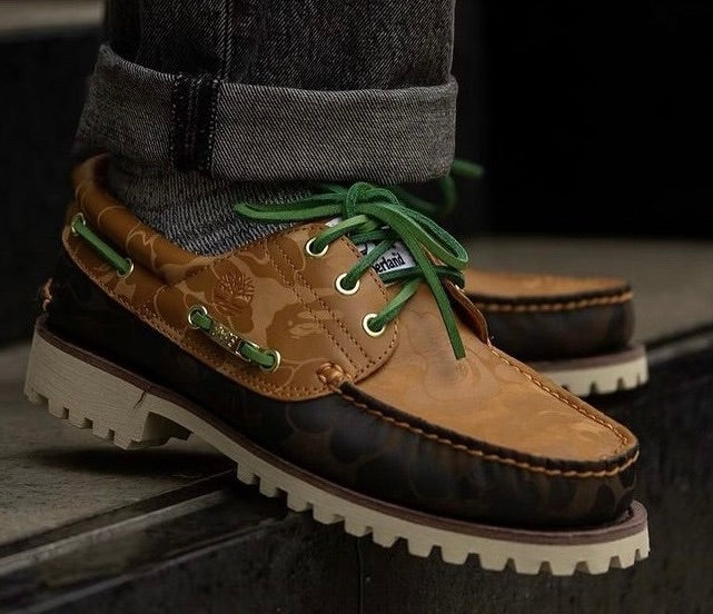 Timberland & BAPE are both icons of streetwear having developed cult followings. To celebrate that, with the outerwear label’s signature footwear. It’s the 3-Eye Lug shoe that gets the nod, with both labels’ design being immediately clear. Its handsewn using leather on the upper, while the footbed has a premium fit.